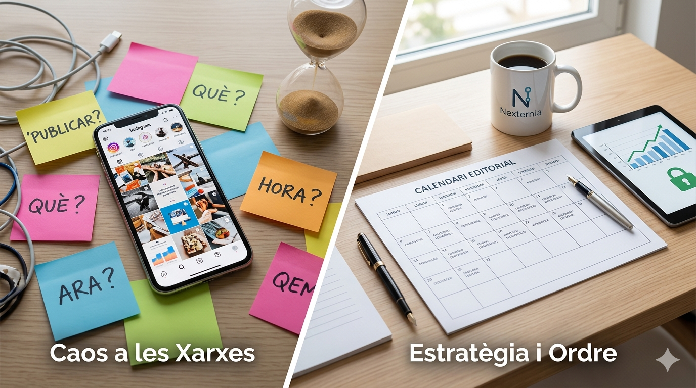 A Nexternia tenim una cosa clara: obrir l’aplicació i pujar la primera foto que trobes al carret del mòbil no és fer màrqueting; és omplir espai. Perquè les xarxes socials funcionin de veritat per al teu negoci, necessites una cosa fonamental: estratègia.